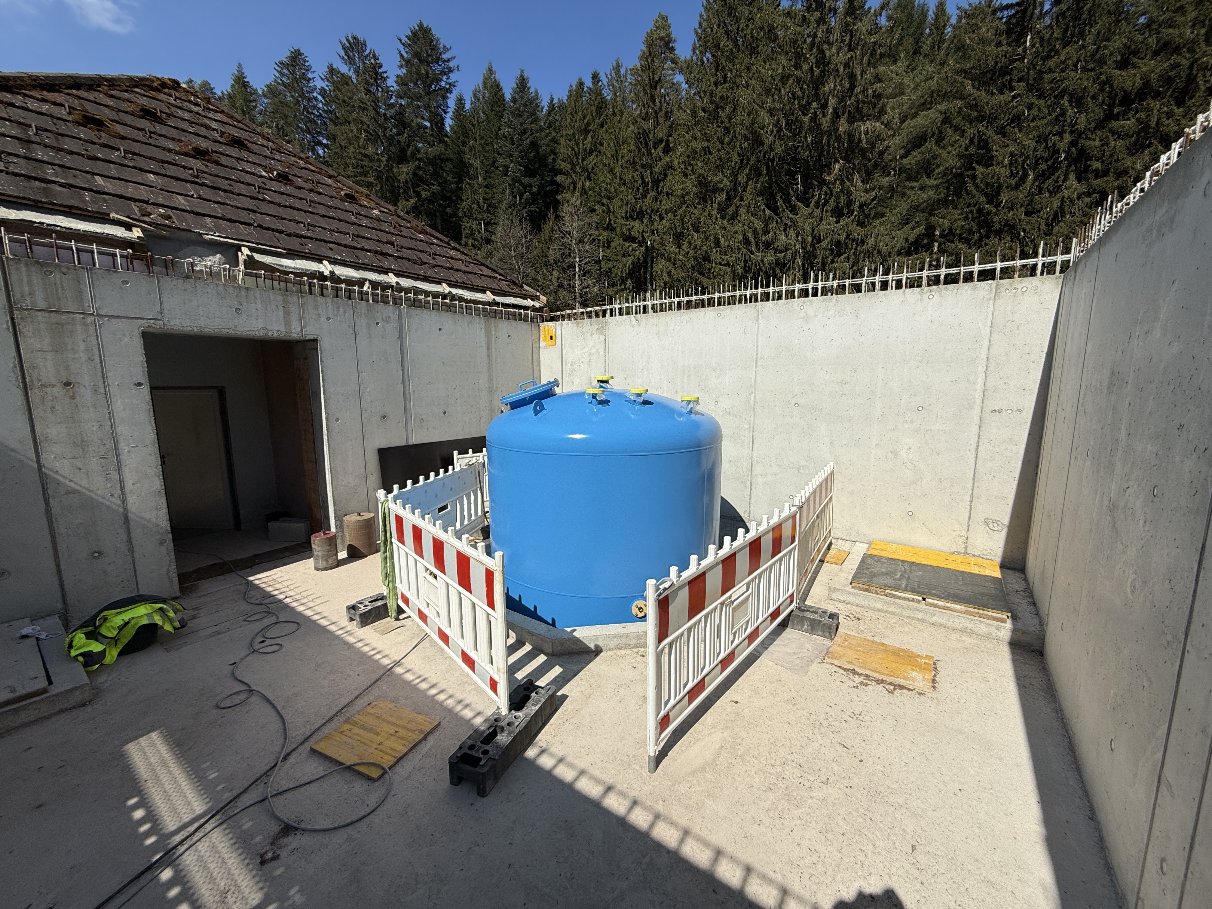 Das Herzstück des Projekts ist der Neubau einer modernen Wasseraufbereitungsanlage, inkl. effizienter Aggregate, die das trübe und saure Quellwasser mit Hilfe von Ultrafiltration und Entsäuerung fit für die Trinkwasserversorgung macht.